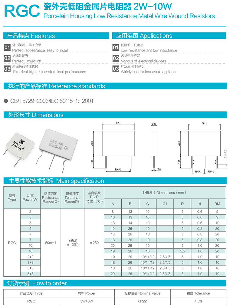 RGC型瓷外壳低阻金属片电阻器